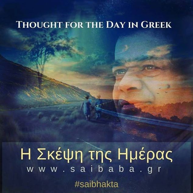 OM SAI RAM – 07FEB2018 – Sathya Sai in Greek Η Σκέψη της Ημέρας 7 Φεβρουαρίου 2018 Η Αγάπη είναι ζωτικής σημασίας. Η Αγάπη είναι θεϊκή. Για να καταστεί μια πράξη άξια να προσφερθεί στον Θεό και αρκετά αγνή ώστε να κερδίσει τη χάρη Του, θα πρέπει αυτή η πράξη να είναι μια εκδήλωση Αγάπης. Προφυλάξτε την Αγάπη από τον κίνδυνο του να δηλητηριαστεί από το κακό. Προσπαθήστε να καλλιεργήσετε αγάπη απαλλαγμένη από κάθε είδος μίσους και προκατάληψης. Η βάση όλων των θρησκειών, η ουσία όλων των γραφών, το σημείο συνάντησης όλων των δρόμων και η έμπνευση για όλους τους ανθρώπους, είναι η Αρχή της Αγάπης. Αυτή είναι το πλέον ακλόνητο θεμέλιο στην αποστολή Ζωής του ανθρώπου. Είναι το Φως που εξασφαλίζει την ειρήνη και την ευημερία του κόσμου. Βαπτίστε κάθε λόγο και κάθε σας πράξη στην αγάπη. Τα λόγια που αναδύονται από το στόμα σας δεν θα καρφώνουν σαν το μαχαίρι, ούτε θα πληγώνουν όπως το βέλος, ούτε θα χτυπούν σαν το σφυρί. Θα πρέπει να είναι γλυκά σαν το νέκταρ, σαν μια παρηγορητική συμβουλή της Βεδαντικής σοφίας και σαν ένας δρόμος ομαλός, στρωμένος με άνθη. Πρέπει να ραίνουν τους συνανθρώπους σας με ειρήνη και χαρά. – Μπάμπα, από ομιλία που δόθηκε στις 29 Ιουλίου 1969 Σάτυα Σάι http://bit.ly/2FLzOTI #sathyasai #saibhakta
