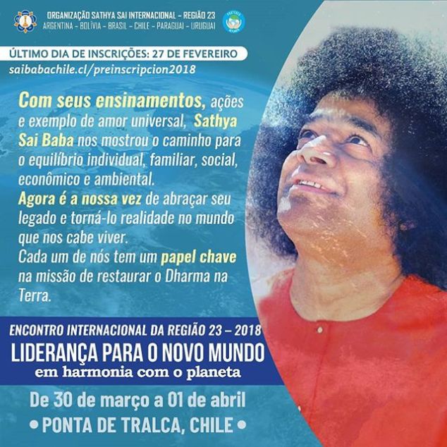 Swami nos chama! Temos encontro no Chile, uma reunião para nosso Trabalho Espiritual, Individual e Social por um mundo melhor! #sathyasai #saibhakta 8 de fevereiro de 2018Saibhakta Brasil View on Instagram http://bit.ly/2sgKGXn Compartilhe isso: Clique para compartilhar no X(abre em nova janela) 18+ Clique para compartilhar no Facebook(abre em nova janela) Facebook Curtir Carregando... Relacionado