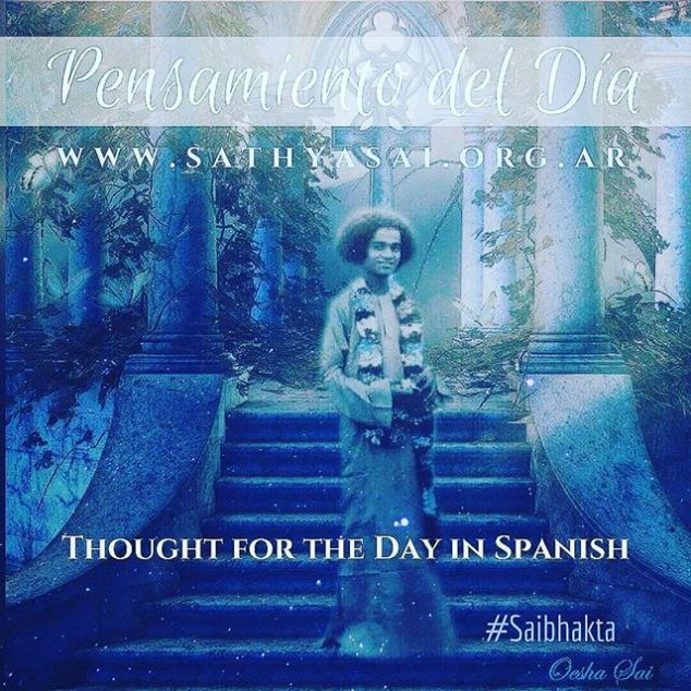 Spanish, 25.Feb.2018 Om Sri Sai Ram MENSAJE DEL DIA 25 de febrero de 2018 OM SRI SAI RAM Mira con la misma mentalidad a la buena suerte y a la desgracia, a la felicidad y al dolor, a la pérdida y a la ganancia. Estos son productos de la naturaleza como el calor y el frío, el verano y el invierno. Ellos sirven a un propósito. De manera similar, los altibajos de la vida tienen lecciones que enseñarnos. De hecho, sin reveses en la vida, no podremos experimentar la Divinidad. Sin oscuridad, no podremos valorar la luz. Sin experimentar dificultades, no podremos disfrutar de los beneficios. Es la falta de paz mental lo que nos obliga a buscar los medios para experimentar la paz duradera. Las escrituras (Upanishads) han declarado que solo a través de la renuncia se puede alcanzar la inmortalidad. Debes aprender a practicar la renunciación verdadera en tu vida diaria para poder descubrir el secreto de la paz y bienaventuranza perdurables. (Divino Discurso, 06 de abril de 1983). #sathyasai #saibhakta #spanish Sathya Sai Baba 25 de fevereiro de 2018Saibhakta Brasil View on Instagram http://bit.ly/2onaInl
