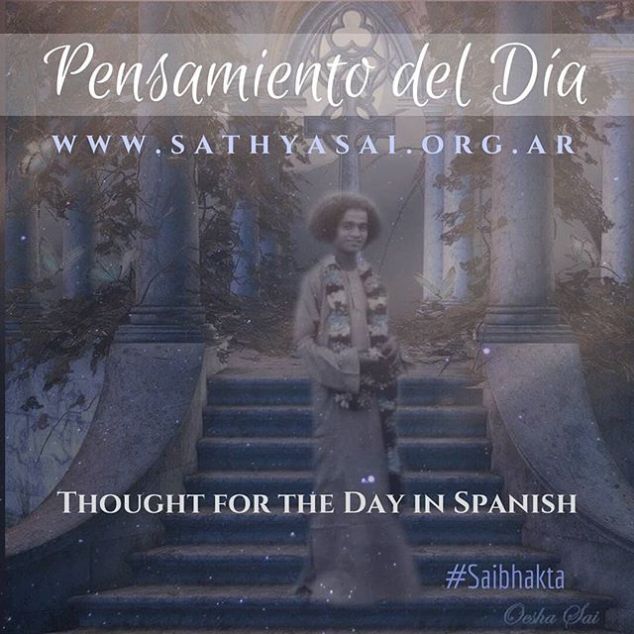 MENSAJE DEL DIA 24 de enero de 2018 Mensaje de la Pizarra de Prashanti Nilayam OM SRI SAI RAM Muchos posponen su “Sadhana” (disciplina espiritual) hasta su vejez. Esto es un error. Gánate la preciosa recompensa mientras seas joven y grácil. Nunca es demasiado pronto para comenzar. La lengua, la vista, la audición, la mano y la mente deberían ser todas entrenadas a partir de la niñez para apartarse del mal. Si todas ellas son conservadas limpias y santas, se habrá ganado la Gracia de Dios. Cuando la carne te incite a caer en falsedad, no cedas y permanece firme. Cuando el individuo es fuerte y consecuente, su familia prospera. Si la familia prospera, la aldea está feliz. Si la aldea está feliz, el país está seguro y fuerte. Cuando los países están seguros y fuertes, el mundo está pleno de humildad y reverencia, de caridad y paz. Canten en voz alta la gloria de Dios y carguen la atmósfera con adoración divina. Las nubes derramarán santidad sobre los campos a través de la lluvia, y los cultivos se beneficiarán de ello, purificando y fortificando el alimento, el cual a su vez inducirá ansias divinas en las personas. Tal es la cadena del progreso. Por esta razón Yo insisto en el canto grupal de los Nombres del Señor. (Divino Discurso, 8 Julio 1968). Sathya Sai Baba http://bit.ly/2FWpNDt #sathyasai #saibhakta 24 de janeiro de 2018Saibhakta Brasil View on Instagram http://bit.ly/2E1EJQ5