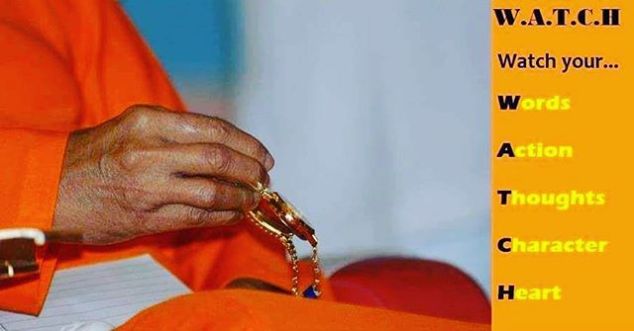 Study Guide on WATCH The Real Watch Is When You Watch Your Words, Actions, Thoughts, Character, and Heart, Not the One You Wear on Your Wrist You Cannot Escape the Consequences of Your Sinful Acts. Watch How You Speak to Others – Abusing Others Is a Sin Observe Total Silence – Silence Is Golden Watch Your Thoughts – Each Time a Thought Arises, Analyse It. Welcome Only Good Thoughts The word WATCH has an important message to convey. WATCH means: W – Watch your Words A – Watch your Actions T – Watch your Thoughts C – Watch your Character H – Watch your Heart The watch you have may break some day or the other. But this “watch” is unbreakable. So, possess this “watch.” Watch whether you are speaking good or bad. Watch whether you abuse others or appreciate them. You should not use your tongue to abuse others. Abusing others is a sin. Do not let your tongue indulge in such sins. You cannot escape the consequences of your sinful acts. Everything has reaction, reflection, and resound, and it comes back to you in some form or the other. Hence, exercise control over the tongue.- BABA #sathyasai #saibhakta 21 de janeiro de 2018Saibhakta Brasil View on Instagram http://bit.ly/2DAJvX8