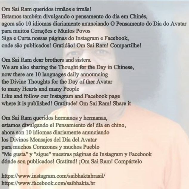 Om Sri Sai Ram #sathyasai #saibhakta 21 de janeiro de 2018Saibhakta Brasil View on Instagram http://bit.ly/2G1dRQY