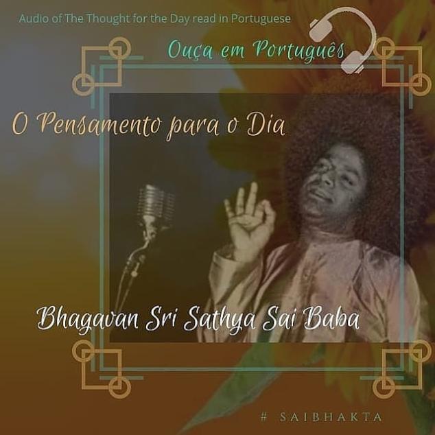Portuguese.Audio 15.10.2018 Om Sri Sai Ram O Pensamento do Dia de Bhagavan Sri Sathya Sai Baba em áudio, lido em Português. ♡♡♡♡♡♡♡♡♡♡♡ Ouça e compartilhe! Listen and Share! ♡♡♡♡♡♡♡♡♡♡♡ http://bit.ly/2NO5nPW ♡♡♡♡♡♡♡♡♡♡♡ “Os dez dias do festival Dasara têm o objetivo de encorajar você a controlar os seus dez sentidos. A lenda diz que a Deusa Chamundi matou o demônio Mahisha durante o festival Dasara. Qual é o significado interno dessa história? Nós não devemos, sob qualquer circunstância, nos associar a demônios. Seus pensamentos, palavras e ações devem ser puros, dignos de um ser humano, não de demônios. Evite más companhias. Esteja sempre em boa companhia. Não desenvolva ódio por ninguém. Todas as pessoas que cruzem seu caminho devem ser consideradas como personificações da Divindade. Cumprimente-as. Sempre fale a verdade, observe a retidão (Dharma). Seja pacífico. Seja feliz e bem-aventurado. Você deve ter uma conduta amorosa na sociedade. Eu estou impregnado com amor. Eu distribuo esse amor a cada um e a todos. Eu não odeio pessoa alguma. Eu realmente não tenho egoísmo! Meu amor é desinteressado. O amor é minha propriedade. Vocês todos são herdeiros desta propriedade. Amor é Deus. Deus é amor. Assim, viva em amor.” (Discurso Divino, 27 de setembro de 2006). http://bit.ly/2FTXeXk #sathyasai #saibhakta #dailysaigram #saimaa #sathyasaibaba #saibaba [PT.BR.rs] 16 de outubro de 2018Saibhakta Brasil View on Instagram http://bit.ly/2AcFQMM