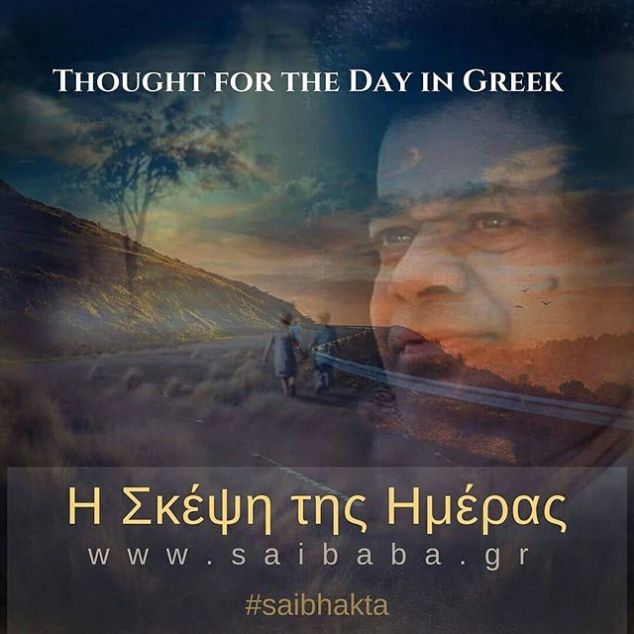 Greek, 14.OCT.2018 Om Sri Sai Ram Στη μεγάλη ρήση από τους Βέδες «Εκείνο Εσύ Είσαι» (Tat Twam Asi), το Εκείνο (Tat) υποδηλώνει εκείνο που βρίσκεται εξωτερικά και το Εσύ (Twam) σημαίνει το εγγενές Θείο. Σημαίνει πως ο ίδιος ο Θεός είναι παρών τόσο εσωτερικά όσο κι εξωτερικά. Ο Θεός, του οποίου η παρουσία είναι διάχυτη παντού, υπάρχει εντός και εκτός. Αυτό που μπορεί να ιδωθεί, να ακουστεί και να βιωθεί εξωτερικά δεν είναι τίποτ’ άλλο παρά η αντανάκλαση, η αντήχηση και η αντίδραση της εντός Ύπαρξης. Αφού η αλήθεια υπάρχει εντός σας, γιατί λαχταράτε για την εξωτερική αντανάκλαση; Είναι η απόλυτη παραφροσύνη. Ο άνθρωπος είναι η προσωποποίηση και ο κύριος του χρόνου. Για να κατανοήσετε την πραγματικότητά σας, πρέπει να ελέγξετε τον νου σας. Γι’ αυτό λέγεται: «Κυριαρχήστε στον νου σας και γίνετε ο αφέντης του». Τα πέντε στοιχεία, που είναι ορατά στον εξωτερικό κόσμο, είναι παρόντα μέσα σας. Είστε ο κύριος των πέντε στοιχείων. Οφείλετε να εξουσιάζετε τον νου σας. Μη γίνεστε σκλάβος του. – Μπάμπα, από ομιλία που δόθηκε στις 9 Οκτωβρίου 2001 Sathya Sai Baba http://bit.ly/2FTXeXk #sathyasai #saibhakta #dailysaigram #saimaa #sathyasaibaba 14 de outubro de 2018Saibhakta Brasil View on Instagram http://bit.ly/2QP3vrR