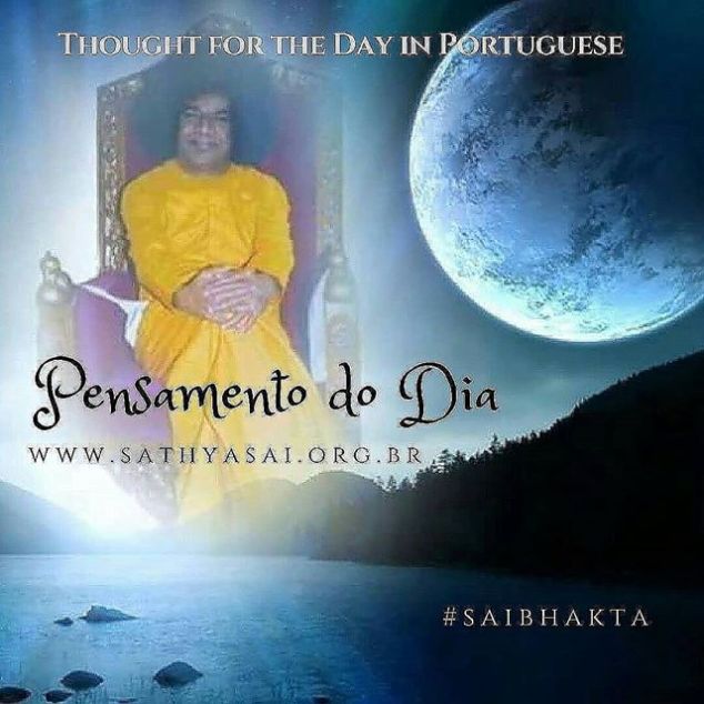 Portuguese.Audio 09.AUG.2018 Om Sri Sai Ram O Pensamento do Dia de Bhagavan Sri Sa thya Sai Baba em áudio, lido em Português. ♡♡♡♡♡♡♡♡♡♡♡ Ouça e compartilhe! Listen and Share! ♡♡♡♡♡♡♡♡♡♡♡ http://bit.ly/2MpOZnU ♡♡♡♡♡♡♡♡♡♡♡ Saiba que o propósito do nascimento humano é alcançar o Senhor por meio da adoração. Baba Manifestações do Amor Divino! Pensamento para o dia 09/09/2018 O nascimento humano é precioso. Santifique-o, levando uma vida correta. Não o desperdice. Independentemente se você pratica ou não qualquer disciplina espiritual, cultive amor por todos. Ofereça este amor a todos, como um presente divino. Somente por meio do amor, a unidade mundial pode ser promovida. Em consequência da falta de amor, todos os tipos de diferenças aparecem. Amor é Deus. Viva em Amor. Faça deste o princípio regulador da sua vida. Seja respeitoso com todos. Personificações do Amor Divino! Lembrem-se sempre que Deus permeia tudo no cosmos. Tudo que você experimenta é Divino. Tudo que você vê é Divino. O que você come é Divino. O ar que você respira é Divino. Você não pode ver o ar, nem segura-lo. Da mesma forma, você também não pode segurar Deus. Os olhos não podem vê-Lo. Ele só pode ser experimentado no coração. Ele está além da mente. (Discurso Divino, 24 de março de 1989) Sathya Sai Baba http://bit.ly/2FTXeXk #sathyasai #saibhakta #dailysaigram #saimaa #sathyasaibaba #saibaba #sairam #saibaba [pt.br.rj] 12 de setembro de 2018Saibhakta Brasil View on Instagram http://bit.ly/2x5Zd7f
