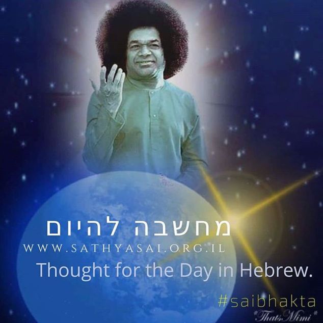 Hebrew, 14.SEP.2018 Om Sri Sai Ram מחשבה להיום, 14.9.2018 אתה חייב לחיות במחשבה מתמדת על אלוהים, כמו גם על עובדה נוספת – המוות. הגוף הוא המכונית שבה אתה רוכבמהר אל היעד שלך. אם אתה לא זהיר בנהיגה שלך, אתהעשוי להיתקל במוות בתאונה – משאית כלשהי יכולה לגרוםלזה! לפיכך, לעולם אל תשכח את שתי העובדות האלה: 1. המוות הוא אירוע ודאי במסע החיים. 2. הזמן שלך אוזל עםכל רגע חולף. כאשר אתה זוכר את אלה, אתה לעולם לאתתפתה לבזבז זמן בשיחות סרק או עיסוקי שווא, אובתעלולים מופקרים או בידור גס וזול. על הכביש יש לנסוע במכונית בזהירות, לאט, עם תשומת לב לאחרים. אל תנסהבתאוותנות לעקוף אחרים או להתחרות במהירות; דע אתמגבלות הרכב שלך ואת הכביש! אז לא תארע לך שוםתאונה. המסע שלך יהיה חוויה משמחת בשבילך כמו גםעבור כול הסובבים אותך! השיח האלוהי, 26 לאוקטובר, 1963 – באבא Sathya Sai Baba http://bit.ly/2FTXeXk #sathyasai #saibhakta #dailysaigram #saimaa #sathyasaibaba #saibaba #sairam 15 de setembro de 2018Saibhakta Brasil View on Instagram http://bit.ly/2OoE2EY