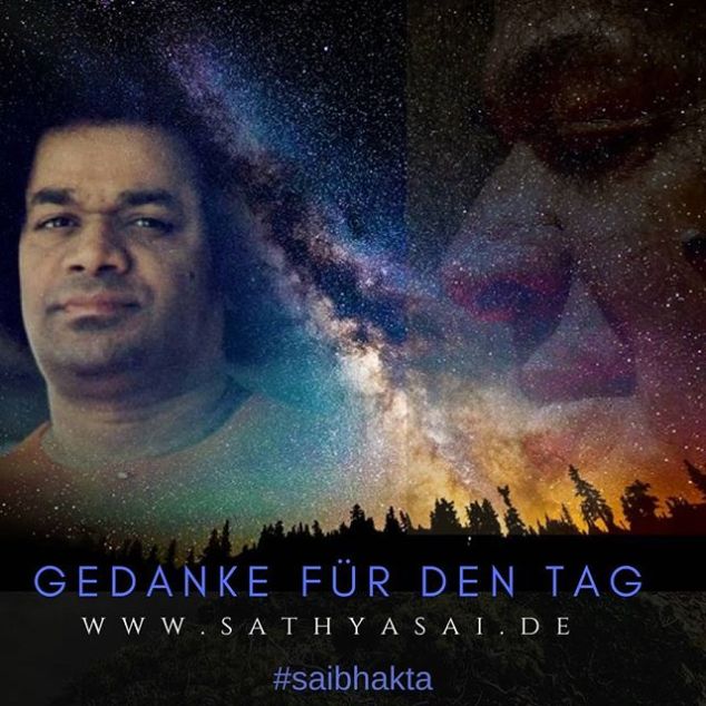 German, 28.JUN.2018 Om Sri Sai Ram GEDANKE FÜR DEN TAG AUS PRASHANTI NILAYAM VOM 28. JUNI 2018 Menschen sind durch Taten gebunden (karma) und werden durch Taten erhalten. Durch Taten können sie alles erreichen. Ihre Leistungen bestehen in ihrer Fähigkeit zum Tun. Die ausgeführten Taten haben ihre entsprechenden Konsequenzen, und niemand kann den Konsequenzen seiner Taten entkommen. Tut also Gutes, entwickelt gute Gedanken und sucht gute Gesellschaft auf, um gute Belohnungen in der Zukunft zu erhalten. Wie der Samen, so der Baum und seine Früchte. Engagiert euch also schon in jungen Jahren für gute Taten. Was sind gute Taten? Es sind die Taten, die Gott erfreuen. Wenn ihr Taten ausführt, die Gott gefallen, bekommt ihr die Belohnung, die euch gefällt! Deshalb lehren uns die heiligen Schriften, alle Taten so auszuführen, dass sie Gott erfreuen (Sarva karma Bhagavad preethyartham).Wenn ihr alle Handlungen Gott darbringt, wird euer Herz heilig, dann könnt ihr ein friedliches Leben führen. Praktiziert mit festerEntschlossenheit die drei Ps (im Englischen) – purity (Reinheit), patience (Geduld) und perseverance (Ausdauer) –, um euer Herz heilig zu bewahren. Sathya Sai Baba, 22. April 1993 Sathya Sai Baba http://bit.ly/2Dnux7s #sathyasai #saibhakta #dailysaigram 28 de junho de 2018Saibhakta Brasil View on Instagram http://bit.ly/2N5tha9