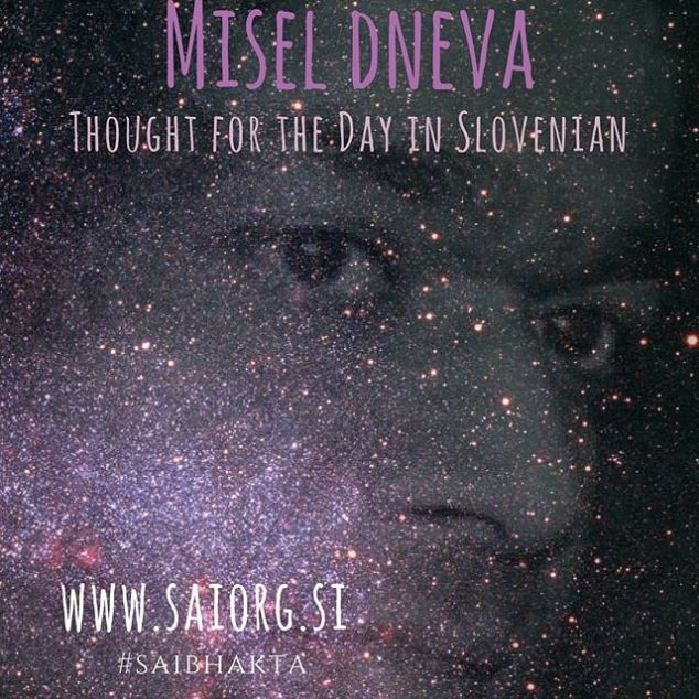Slovenian, 28.JUN.2018 Om Sri Sai Ram 28.6.18 Tri načela za mirno življenje Človek je zavezan k delovanju. Z delovanjem in lastnimi dejanji lahko doseže vse, seveda odvisno od sposobnosti in izurjenosti. Vsako dejanje prinese posledico, čemur se nihče ne more izogniti. Če želite svetlo prihodnost, delajte dobro, negujte plemenite misli in se družite z dobrimi ljudmi. Kakršno je seme, takšno je tudi drevo in sadeži, ki jih obrodi. Zato od malih nog delajte dobro. Kakšna so dobra dela? Tista, ki so tudi Bogu po volji, saj ste le v tem primeru na koncu tudi vi zadovoljni. Zato sveti spisi svetujejo, naj človek deluje tako, da s svojimi dejanji ugodi Bogu. Ko vsa svoja dejanja predate Bogu, vaše srce postane sveto, v življenje pa se naseli notranji mir. Da bi srce vedno ostalo sveto, morate v življenju upoštevati tri načela: čistost, potrpežljivost in vztrajnost. – iz govora Sathya Sai Babe, 22. april 1993 Sathya Sai Baba http://bit.ly/2kbxYlu #sathyasai #saibhakta #dailysaigram 28 de junho de 2018Saibhakta Brasil View on Instagram http://bit.ly/2KyxBRa