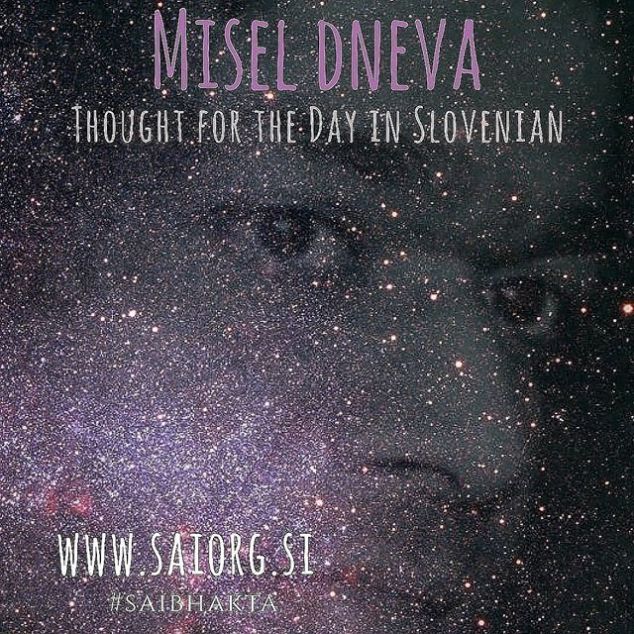Slovenian, 19.06.2018 Om Sri Sai Ram Praznike slavite tako, da razumete in izkusite njihov pravi pomen. Od tega trenutka naprej zaživite na novo in opustite slabe misli ter slabe lastnosti. Očistite svoje srce in vaše življenje bo izpolnila blaženost. Nesmiselno je prebirati svete knjige in obiskovati plemenite, vzvišene duše, če ne očistite svojega srca. Naj bodo svete vaše misli, besede in dejanja. To je pravi pomen praznovanja Novega leta (danes je tamilsko novo leto). Vse, česar se lotite s čistim srcem, je obsojeno na uspeh. Prepričani ste, da ste zelo ste predani Svamiju, vendar to pomeni, da morate dosledno upoštevati moje učenje. Življenje izpolnite z ljubeznijo. Nehajte kritizirati druge. Spoštujte celo tiste, ki vas ne marajo. Sovraštvo je slaba lastnost, ki vas bo uničila, zato se znebite tega zla. Ljubite vse. Ko upoštevate moje učenje, bodo rezultati zagotovo sveti in izgradili si boste dobro ime. Opustite sebičnost in svoje življenje posvetite za dobrobit drugih. – Govor Sathya Sai Babe, 13. april 2002 Misel dneva 13.04.2017 Sathya Sai Baba http://bit.ly/2kbxYlu #sathyasai #saibhakta #dailysaigram 19 de junho de 2018Saibhakta Brasil View on Instagram http://bit.ly/2t8rsRw
