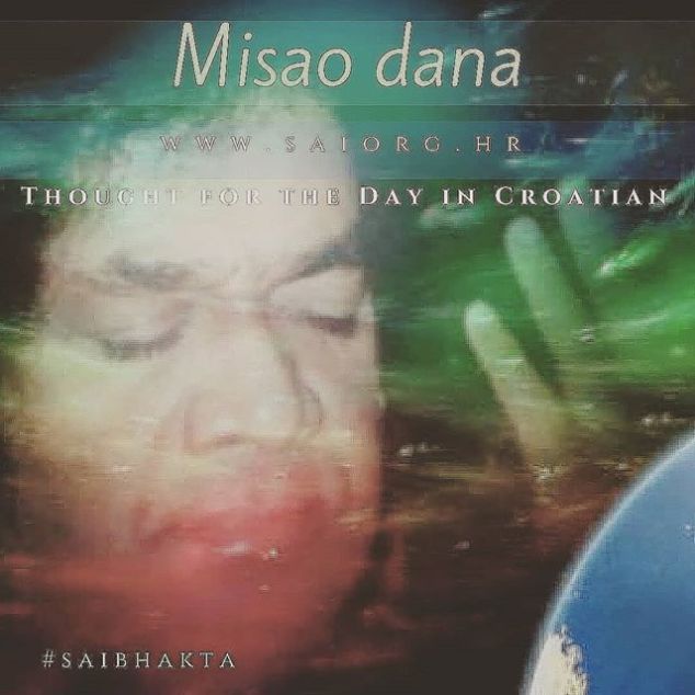 Croatian, 30.MAY.2018 Om Sri Sai Ram Misao dana 30. 5. 2018. Prvo međusobno uspostavite jedinstvo; nemojte u drugima tražiti mane, a u sebi vrline. Imajte punu vjeru u očinstvo Boga i bratstvo među ljudima, a svako svoje djelo ispunite poštovanjem i ljubavlju. Gdje god jeste, što god da radite, učinite to kao čin štovanja, čin predanosti, čin na slavu Boga koji je Poticatelj, Svjedok, Gospodar. Nemojte svoje aktivnosti dijeliti na “one za sebe“ i na “one za Boga“. Na sav posao gledajte kao jedinstven. Kad radite, ništa ne bi trebalo ostati, ništa čekati. Završite sve aktivnosti, do posljednje. Ne trebaju se ponovo javljati. Ako ih sve stavite pred Gospodova stopala i oslobodite ih od bilo kakvog traga egoistične vezanosti, posljedice vas neće vezati, slobodni ste, oslobođeni, dostigli ste mokshu (oslobođenje). (Božanski govor, 21. travnja 1967.) Sathya Sai Baba Sathya Sai Baba http://bit.ly/2FGoaZq #sathyasai #saibhakta #dailysaigram 31 de maio de 2018Saibhakta Brasil View on Instagram http://bit.ly/2sk9tqU