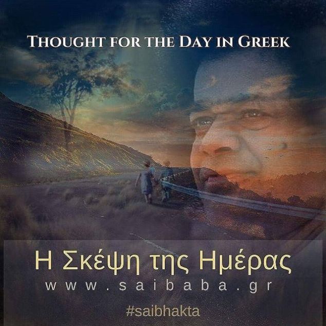 Greek, 27.FEB.2019 Om Sri Sai Ram Ανάμεσα σε όλες τις ζώσες υπάρξεις, η ανθρώπινη γέννηση είναι η σπανιότερη. Μη χάσετε μια τέτοια πολύτιμη και σπάνια ευκαιρία. Θα απωλέσετε την ανθρωπιά σας, αν ενδώσετε στο ψεύδος και την αδικία. Γι’ αυτό να σκέπτεστε θετικά, να μιλάτε καλότροπα, να έχετε θετική οπτική. Να βλέπετε το καλό, να πράττετε το καλό, να είστε καλοί. Αυτό είναι το εσώτερο νόημα της ζωής. Αν υποθέσουμε πως κάποιος σας επικρίνει, θα πρέπει να σκεφτείτε πως κι αυτή ακόμη η επίκριση λειτουργεί υπέρ σας. Οτιδήποτε μπορεί να κάνουν οι άλλοι, θεωρείστε πως όλα γίνονται για το καλό σας. Οι πράξεις σας ας στοχεύουν στη λύτρωση της ζωής σας. Βεβαιωθείτε, πως κάτω από οποιεσδήποτε συνθήκες, δεν θα χάσετε την ανθρωπιά σας. Ζήστε με χαμόγελο και χαρά. Οι πράξεις σας θα πρέπει να κινούνται από καλές προθέσεις. Προκειμένου να πράττετε ενάρετα, απαραίτητο είναι να σκέπτεστε ενάρετα. Όταν ο νους είναι πλήρης καλών σκέψεων, δεν υπάρχει χώρος για τις κακές σκέψεις. Αυτό δημιουργεί τις προϋποθέσεις της καλής υγείας. Να αγαπάτε όλους, να υπηρετείτε όλους. Εάν συμμορφώνεστε με αυτές τις αρχές, θα είστε πάντοτε υγιείς. – Μπάμπα, από ομιλία που δόθηκε στις 3 Ιουλίου 2008 Sathya Sai Baba http://bit.ly/2FTXeXk #sathyasai #saibhakta #dailysaigram #saimaa #sathyasaibaba #saibaba #omsairam #sairam #india 27 de fevereiro de 2019Saibhakta Brasil View on Instagram http://bit.ly/2UaTdV9